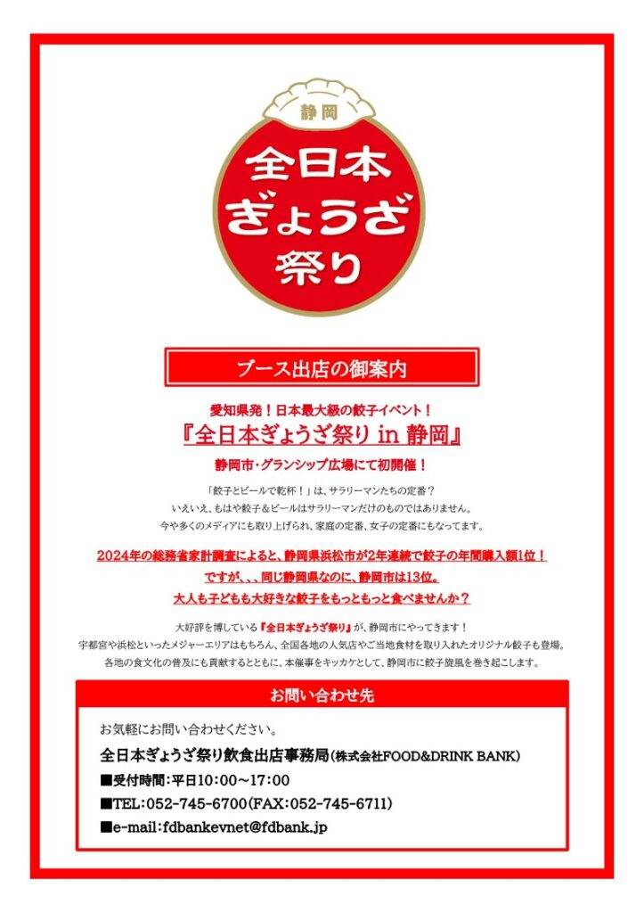 全日本ぎょうざ祭りin静岡 餃子ブース出店者募集中!