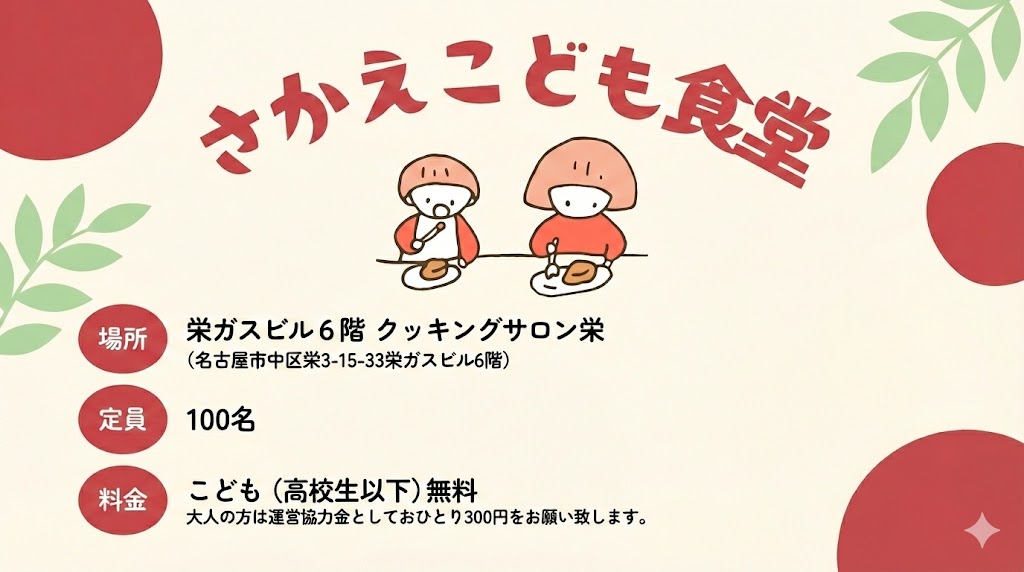 さかえこども食堂@クッキングサロン栄 2月より再開します! 2026 1/31 「食」のコミュニティサロン 募集中 サロン お知らせ 1月はお休みをいただきましたが、2月より再開します 詳しくはこちら 「食」のコミュニティサロン 募集中 サロン お知らせ こども食堂 よかったらシェアしてね! URLをコピーしました! 関連記事 第4回アンフォーレあったかグルメとマルシェ 岐阜ファミリーパーク キッチンカー出店情報 名古屋キャンピングカーフェア 2025 AUTUMN 夏休み特別企画👩🍳🐟親子で楽しむお魚料理教室 DANCE HALL 復活祭 9/13 マルハニチロ株式会社協賛 親子で楽しむ「未来の養殖を考えるお魚料理室」~海水温の上昇による影響とサステナブルシーフードを知ろう~ 2025年5月31日(土曜日)二年ぶりの開催決定 | 名港水上芸術花火2025 4/26-5/6 全日本うまいもの祭り in モリコロパーク